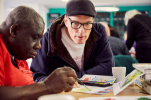Day Service Co-ordinator Mark supporting member Seth in our day centre.