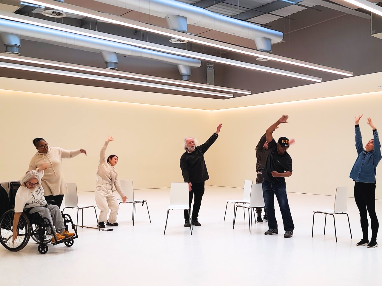 Recorded at Studio Wayne McGregor‘s dance studio in Stratford in January 2022 with 5 of our members – Tirzah, Theresa, Ken, Evaldas and Trevor – this is a fantastic resource for groups and individuals with limited mobility to exercise and explore movement in a fun and accessible way.