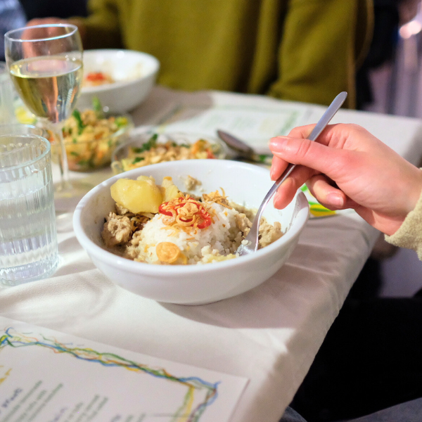 The celebration continued with a special chicken or tofu Massaman curry served with rice and Thai salad and ended on the sweet notes of apple cake with salted toffee sauce.