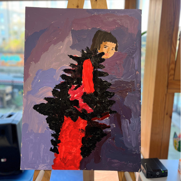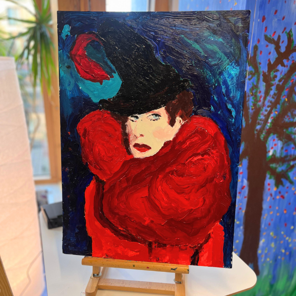 Choices are very important when working together: his colour palette, image references and materials are always offered up to Jon to choose. Through spending time together, they learn to read his facial expressions, and noting what makes him smile, and can get an understanding of what Jon would like to create. As you can see from the image gallery below and his portfolio, fabulous women are often his desired subject choice!