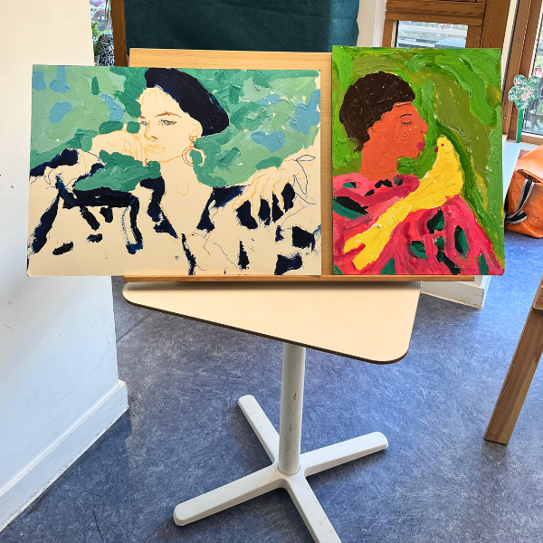 “My favourite part of working with Jon is the fantastically generous thick paints that he uses. Watching as the paint lands on the page and slowly creates the most beautiful artworks is nothing short of extraordinary and personally, I am very grateful to learn from Jon, as I am sure everyone else who is lucky enough to work with him would agree.” – Hannah, Art Studio Coordinator
