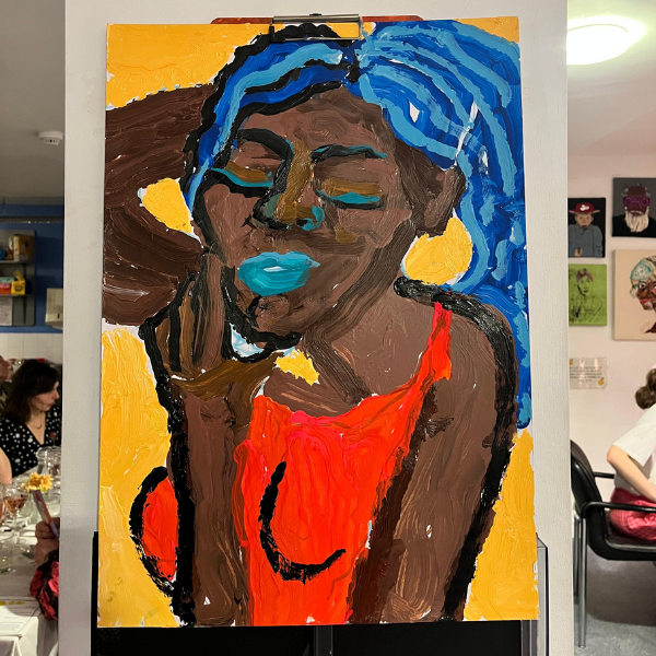 We welcomed our guests with fizzy, refreshing lemonade served with crispy tofu and Filipino banana ketchup. We then invited them to explore an exhibition of vibrant paintings, often depicting elegant women in bold colours and with thick, expressive brushstrokes.