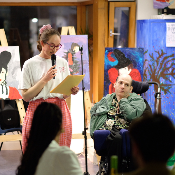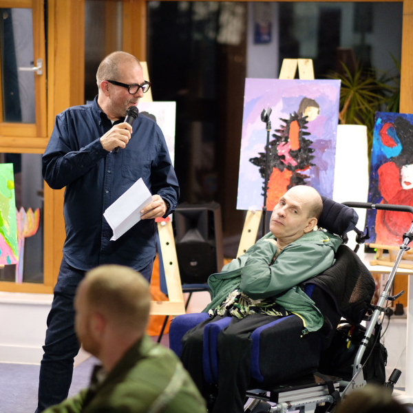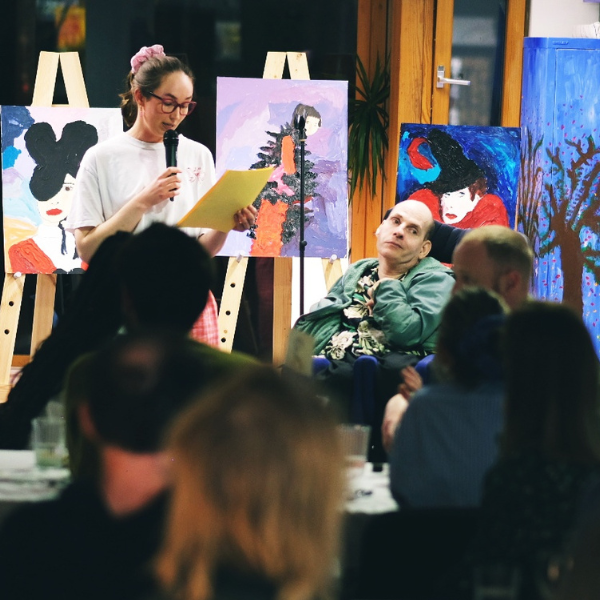During the evening we had the opportunity to learn about Jon’s story by listening to his brother Mark and our art studio coordinator Hannah.
