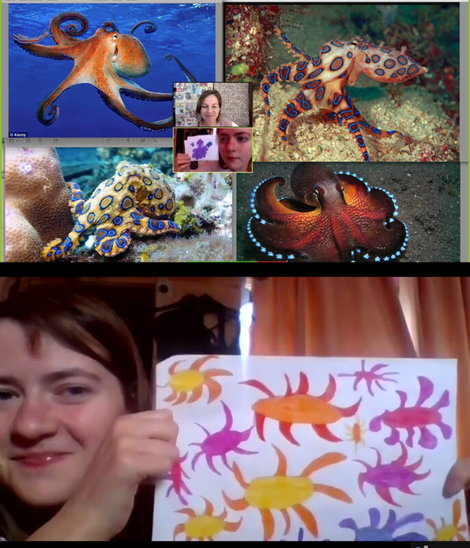 Normally you’ll find Headway Support Workers out in the community, or visiting people at home. Their role helps members to gain more independence; be that through practical support or just venturing out and trying new activities. For Sam and member Laura, they typically enjoyed going to the cinema or coffee, shopping in town, lots of chatting and the occasional bit of drawing. Since March, their sessions have looked quite different – starting on the telephone before moving over to Zoom – but they’ve arguably been more creative than ever! “We watch animal videos and do meditation sessions. Whereas previously we would always go out in the community, now we are able to focus on developing projects from week to week” says Sam, “we’ve also been talking, drawing and writing a story”. Below is the first of these! The pair worked over a number of sessions, drawing creatures from the sea to accompany their tale, and have even put together a playlist to go with it (scroll to the end). Now let’s all take a trip down to the depths of the ocean…..