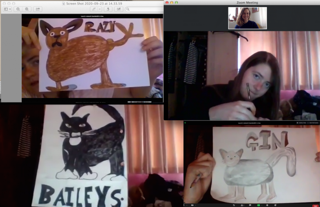 Earlier this year, during the first national lockdown, we introduced you to member Laura and Support Worker Sam; whilst they usually spent their sessions going to the cinema or out for coffee, they’d been getting incredibly creative over Zoom whilst at home – reasulting in some amazing stories (which you can read the first of here). This time, they’re presenting a brand-new feline inspired story (completed in the same way, week-by-week) with accompanying drawings!