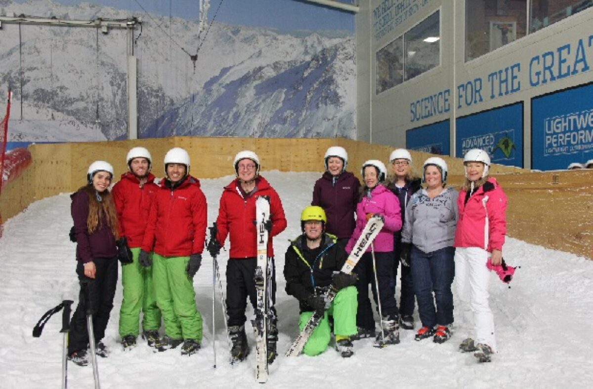 I was then in a coma for 10 days in Grenoble and because of the lack of oxygen under the snow, I was left with a very serious brain injury which means I’m learning to eat, talk and walk again. It’s like just when you think I couldn’t be anymore immature, I suddenly proved everyone wrong! 3 years on, I was lucky enough to get to go on a Headway ski trip, although when I found out I would be strapped into a wheelbarrow thing on skis with someone behind holding on to me with reigns …without wanting to sound ungrateful, I was a bit disappointed, I was hoping to have a go on a snowboard again. In all honesty, I am probably light years away from riding on a snowboard again, but still thought the wheelbarrow thing, ok, adaptive ski thingy would be naff. We headed up to the top of the slope, which is quite high for an indoor slope, made sure we were all set up, then off we went. I have to say, as soon as I got going from the top and we picked up speed, started cornering and jumping over bumps I remembered the exhilaration from snowboarding and although it wasn’t the same, I really enjoyed it! I had another 3 runs, the last 2 where I had to use my arms attached to skis to turn. It was probably the best thing I have done since my accident!!”