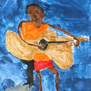 In a similar way, there is a connection between art and colour that does not depend on language, physical ability or thought. At the Submit to Love Studio members have the opportunity to create art work and to play with colour, regardless of their physical and cognitive abilities. A powerful connection can be made between these two things that bypass language and perhaps conscious thought: the connection between art and music, between colour and jazz. The video of Alan immersed in sound and colour [taken during the art and jazz workshop behind The Colour of Jazz t-shirt collection] is a superb way of expressing this.