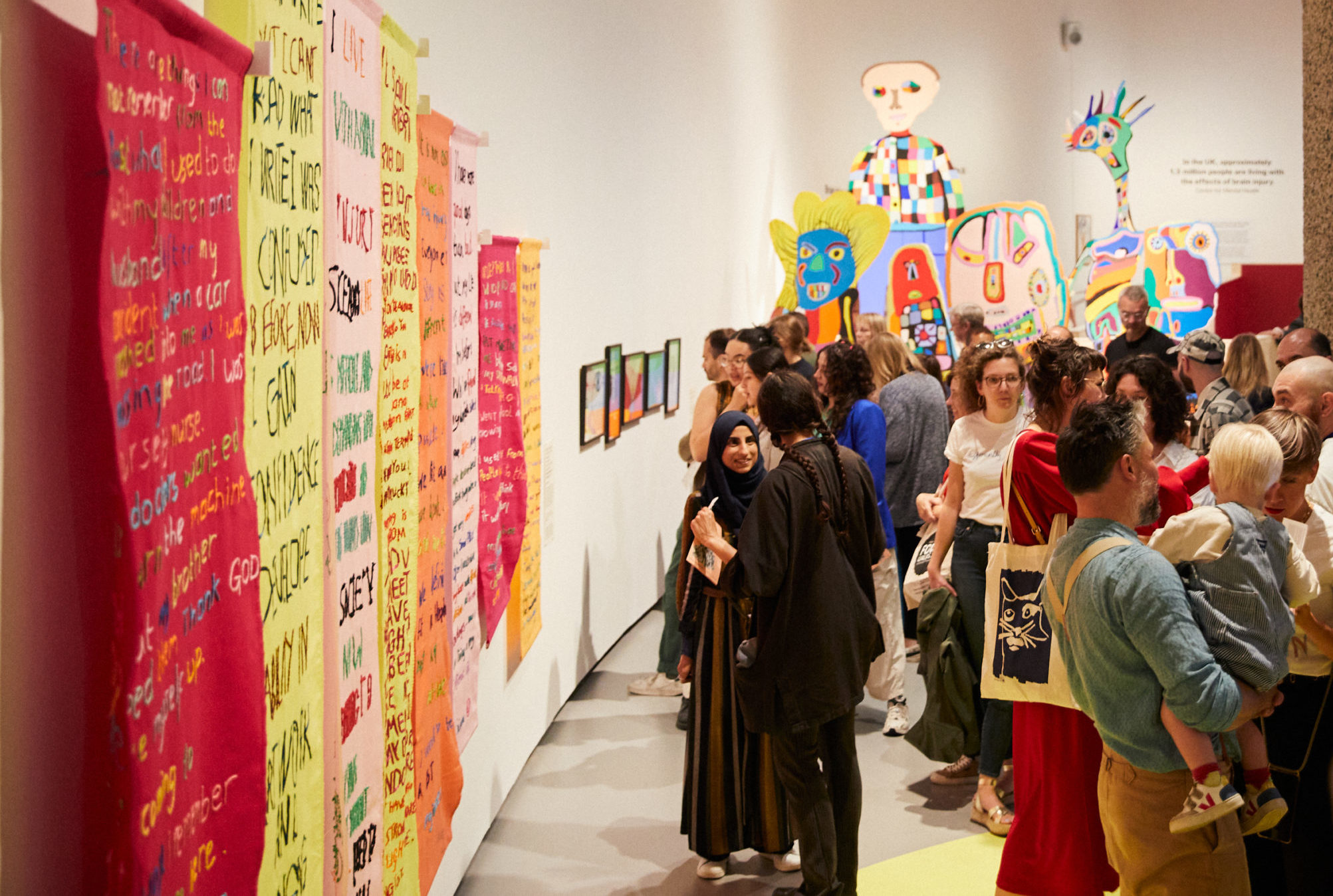 For example, in the Survivor’s Corner, you will find a relaxing space inviting visitors to discover more about members’ journeys and Headway community through a curated film reel. This area also showcases the amazing graphic text works of Tony Allen and Tony Brooks.